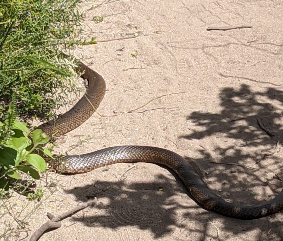 The snakes you see, like this dugite I came across on a walking trail, probably aren’t the ones you will be bitten by.